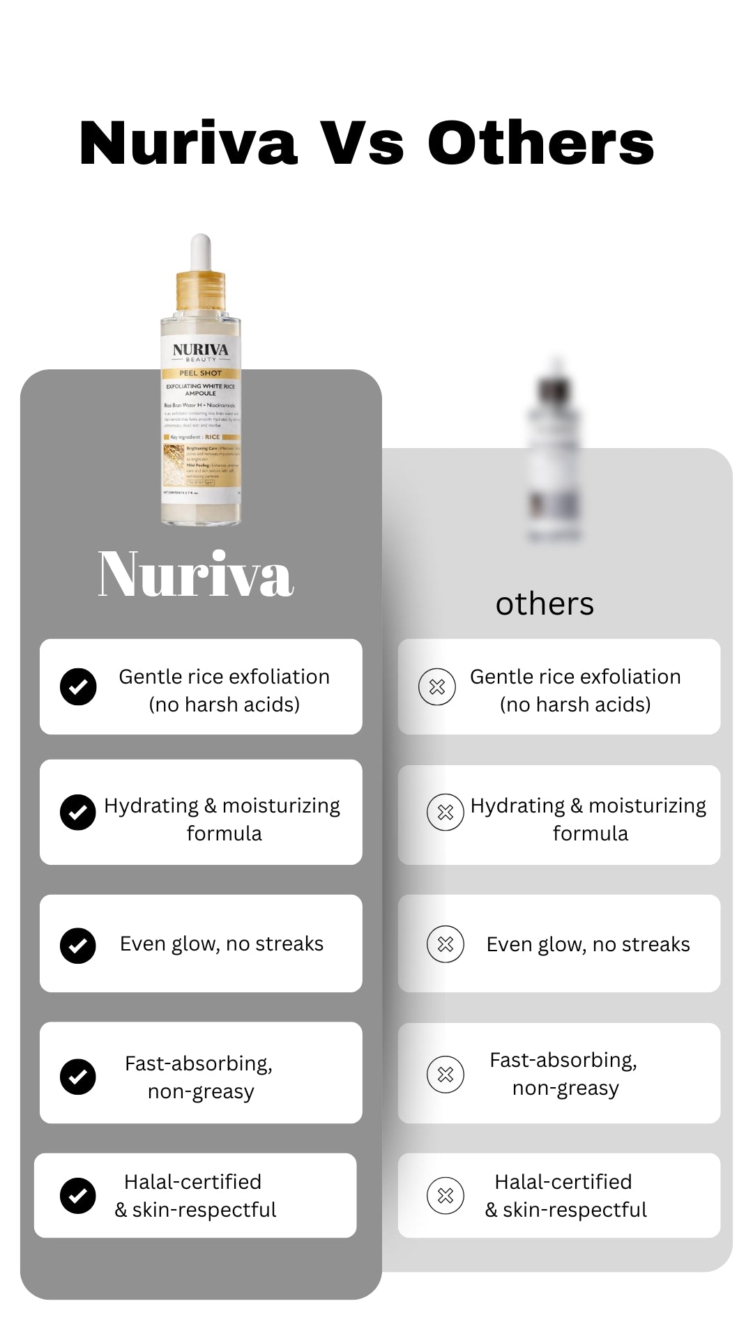 Powered by Halal, Dermatologist-Approved Science, the formula combines carefully selected exfoliating agents with nourishing rice extracts, using only safe, 100% Halal-compliant ingredients that respect both your skin and your values.